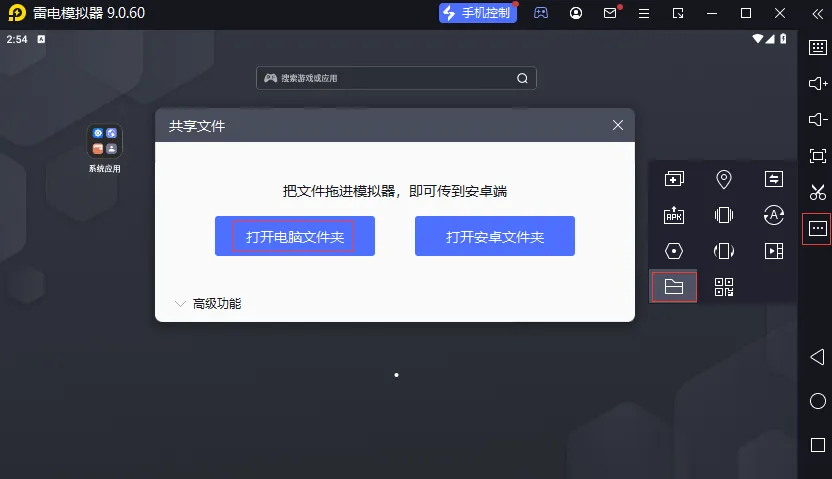 我这次使用的是雷电模拟器,安装好后找到电脑端的共享文件夹,然后将已经修改过的 APK 文件复制进来。