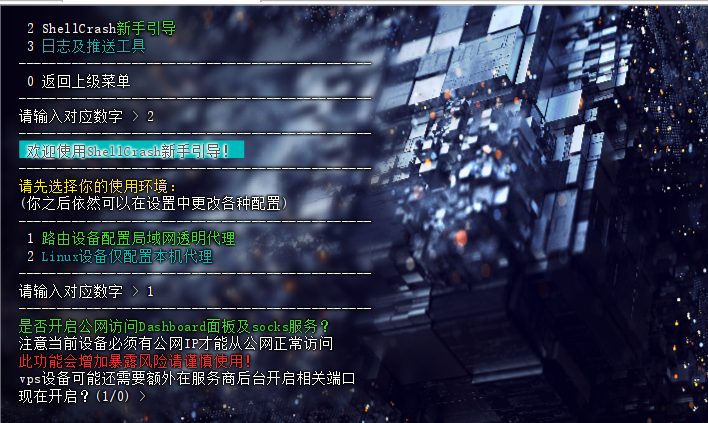 - 注:强烈建议选择 0,待以下配置完成后,最后一步启动 clash 服务