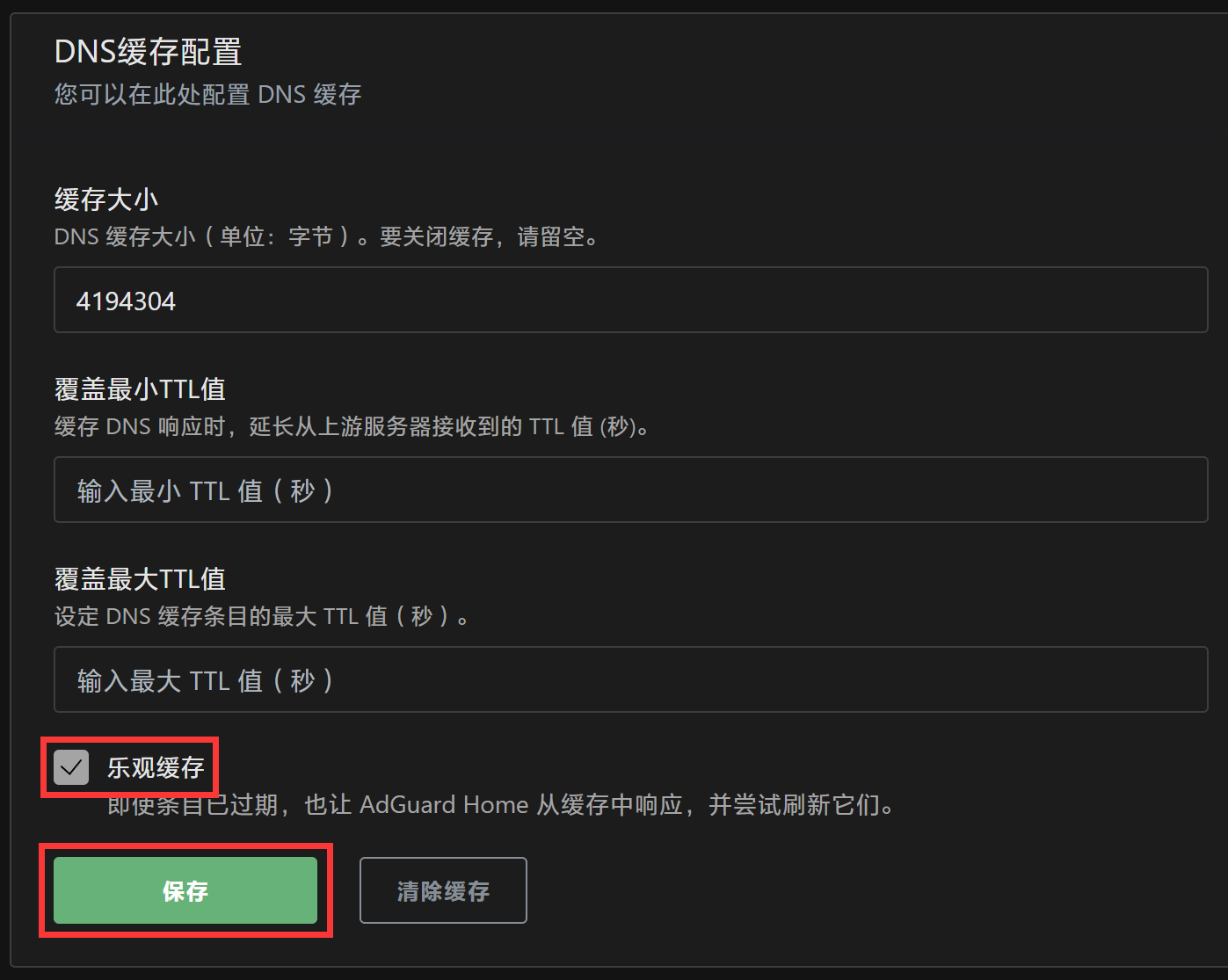 勾选“乐观缓存”,并点击“保存”