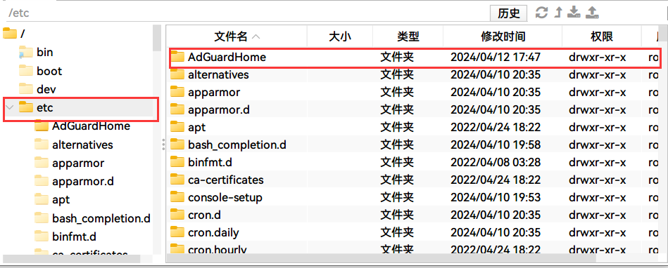 ② 连接SSH将解压得到的AdGuardHome拖入/opt/根目录下或者/etc/根目录下即可